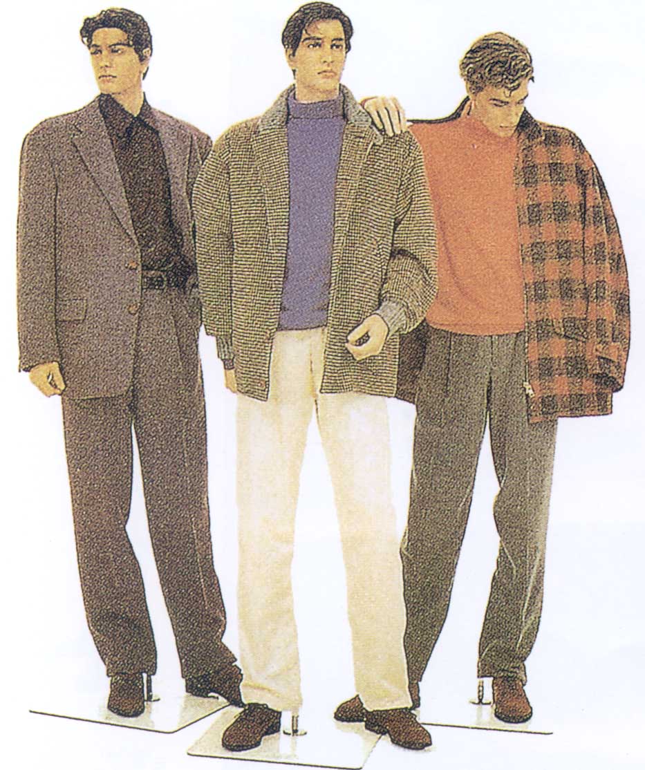 Des mannequins hommes de la << série P de TOLLY >> avec des perruques